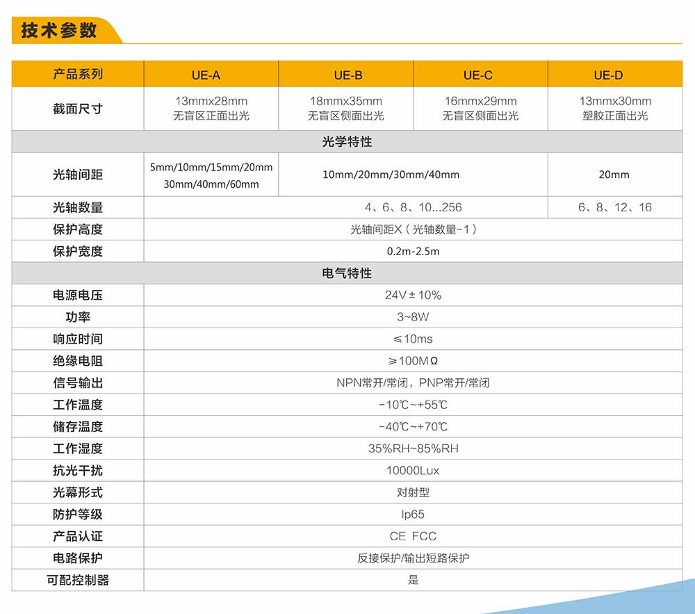 薄款型安全光柵是基于微機(jī)控制的一套高品質(zhì),高性能安全防護(hù)產(chǎn)品,采用進(jìn)口紅外線不可見光紅外線傳感技術(shù),外觀“輕薄小巧”,自檢功能完善,使用簡單,安全可靠,響應(yīng)時(shí)間15ms以內(nèi),易于準(zhǔn),適合各種小型設(shè)備或治具或空間狹小的地方使用。產(chǎn)品已通過歐洲CE認(rèn)證和美國FCC認(rèn)證!自帶雙獨(dú)立晶體管安全輸出,可支持無盲區(qū)型定制。