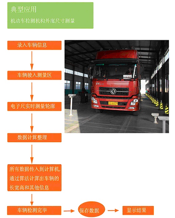 依據(jù)國家標(biāo)準(zhǔn)GB 1589-2004《道路車輛外廓尺寸、軸荷及質(zhì)量限值》、GB 7258-2012《機(jī)動(dòng)車運(yùn)行安全技術(shù)條件》、GB 21861-2014《機(jī)動(dòng)車安全技術(shù)檢驗(yàn)項(xiàng)目和方法》,為了從源頭上把好關(guān),各個(gè)公安車輛管理所、機(jī)動(dòng)車檢測站必須對超限的新注冊車輛和在用機(jī)動(dòng)車輛的外廓尺寸進(jìn)行強(qiáng)制檢測;高速公路部門在治理超載超限行政執(zhí)法中,也需要對超限的各種車輛外廓尺寸進(jìn)行檢測。目前,對車輛外廓尺寸的檢測基本上仍延用過去人工測量方式,測量效率低,成本高,測量的準(zhǔn)確性不高,對于車輛改裝重災(zāi)區(qū)的大型貨車、掛車等車輛測量更加困難。檢測過程中也不可避免會(huì)產(chǎn)生一些違規(guī)違法的行為,影響了車輛檢測的公正性和客觀性。由于人工測量的不確定性以及費(fèi)時(shí)費(fèi)力不安全,迫切需要一種測量儀器對機(jī)動(dòng)車外廓尺寸進(jìn)行自動(dòng)測量,以減少測量工作強(qiáng)度及人為因素的干擾。